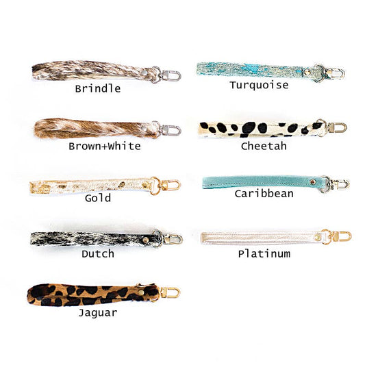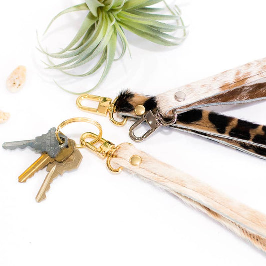 Wrist Strap Key Fob In Leather, Hair on Hide: Brown/White